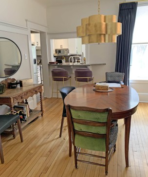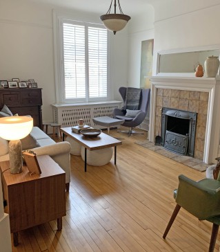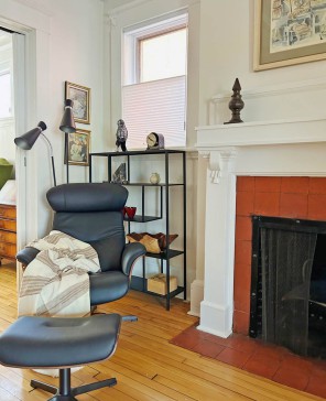 Our three storey, three bedroom semi-detached century home has been fully renovated but still has all of its original character. The main floor includes a cozy living room, with an original fireplace, a dining room and fully equipped kitchen with all appliances including a gas stove and convection oven. The kitchen opens onto a large shady deck, covered in grape vines in summer it’s a lovely place to enjoy a glass of wine or a BBQ on a summer evening. The front porch is also a lovely place to sit and enjoy.