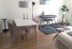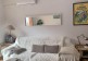 * Sunny and comfortable living room with open kitchen that overlooks a quiet patio with palm trees.