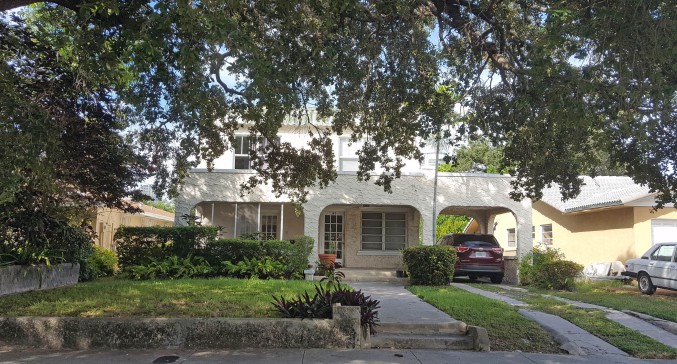 The house is located in a leafy old neighborhood close to downtown Miami/Brickell area & and boasts a resident population of peacocks, along with the usual homeowners. Visitors should be aware that Spanish --- not English --- is the defacto primary language now spoken in Miami.