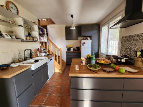 The house is on 3 floors: bottom has 2 big bedrooms (on king size and 2 singles) with access to the garden, a bathroom with bath, shower and toilet, the first floor has a big dining table and sitting room with a very nice wood stove, kitchen and a bedroom (king size bed) a shower and a toilet, direct access to the terrace and garden, the third floor is more like a dormitory with 2 parts (1 double bed, 2 singles and several mattresses), one toilet. Inside wooden stairs connect the floors and bottom & first connect also by a large easy path outside. there is plenty of parking space. Everything runs on electricity + dish washer, washing machine, drier.