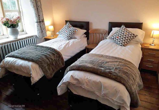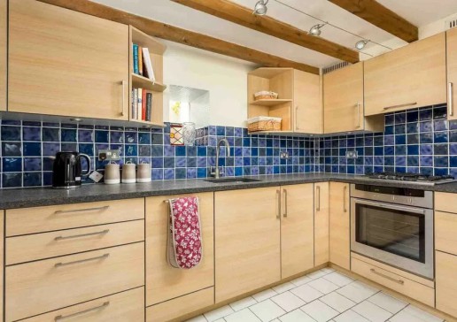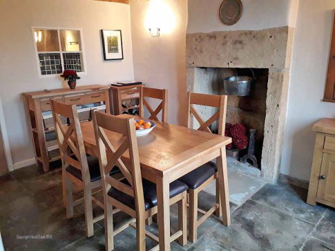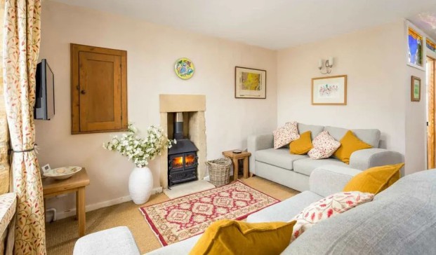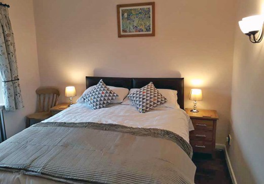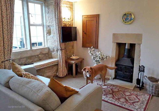 It has typical cottage features including a wood burner in the cosy lounge, a roll-top bath and high-level cistern in the bathroom, flagstone floors in the lower ground floor dining room and kitchen, and two double bedrooms with king-sized beds one of which can be set up as a twin room.