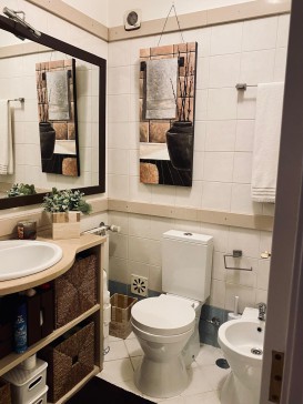 Our two-bedroom, two-bath apartment is located in a quiet Portuguese neighborhood, a ten-minute walk from the train station and a twenty-minute walk from the beach.