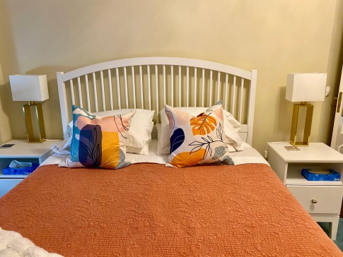 Each bedroom has a queen-sized bed. One bedroom has a stationary bicycle if you feel you need an extra bit of exercise and there are two televisions (one in a bedroom and one in the living room).