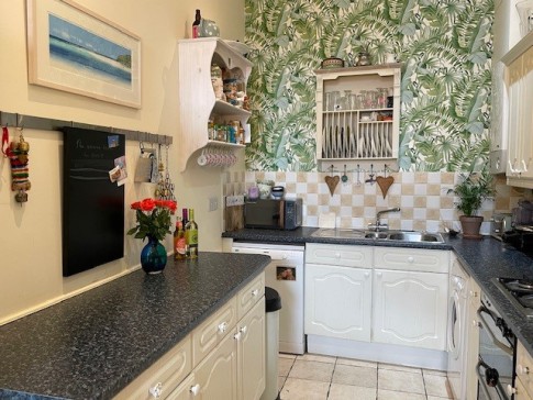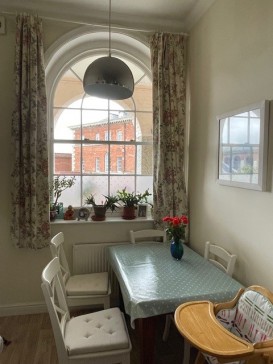 There is a lounge with large windows at each end. There is a lovely sofa and digital TV plus a Ikea sofa bed in the lounge. With a separate kitchen diner. With a dining table, fitted kitchen, washing machine dishwasher and fridge freezer.