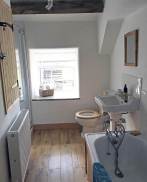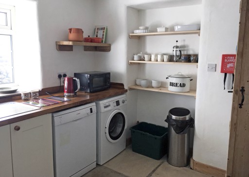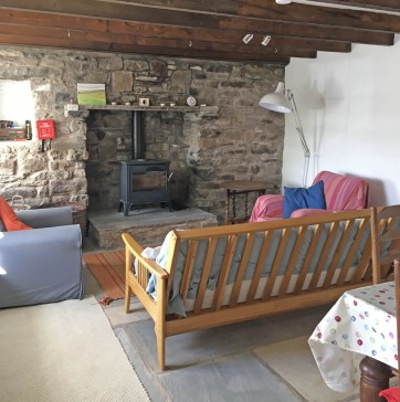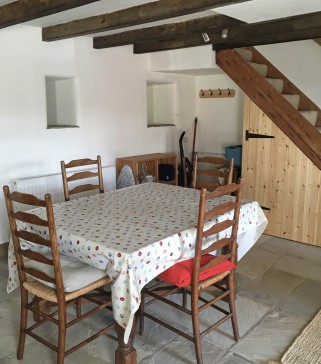 Downstairs there is a large living/dining room with a wood burning stove (wood provided). There is a well-equipped kitchen with cooker, microwave, fridge (no freezer), washing machine and dish washer.