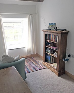 There is a bathroom with shower, bath, toilet and basin. In addition, there is a separate snug reading area with books and views.