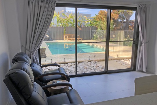 Our one bedroom, one bathroom guesthouse overlooks the swimming pool for your exclusive use. There is a separate fully equipped kitchen, breakfast bar and living room with smart television.