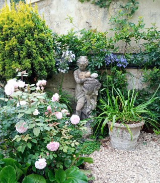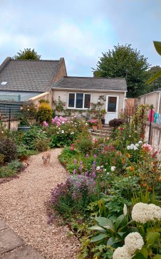 Downstairs is the living/dining room, a kitchen plus a wc. We have a private cottage rose garden opening off from the kitchen with patio and seating areas. At the rear of the garden is a garage with parking. Upstairs there are 3 double bedrooms. A Master suite with a superking size double bed,  ensuite shower room and walk in wardrobe, on the same level there is a twin room with a cot. Down a few steps is a double bedroom and a small family bathroom with a small bath and a shower over.