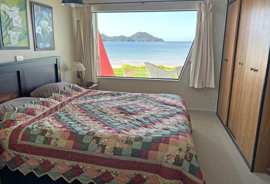 The master bedroom has a king bed with a wonderful view of the bay and an en-suite with shower and toilet. A second bedroom has a queen bed while the third bedroom as four bunks. There is a separate toilet, large laundry, and family bathroom (with large vanity and shower). Wi-Fi is throughout the house.