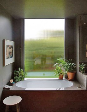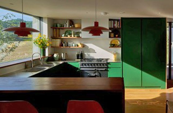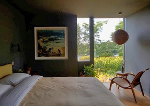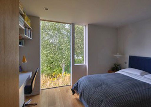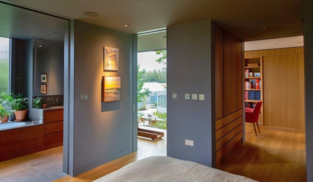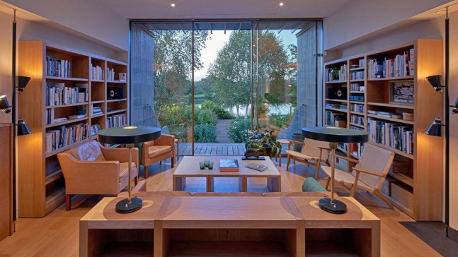 The interior is filled with light from the floor to ceiling windows and gives views of the large garden, river and Winter Hill.