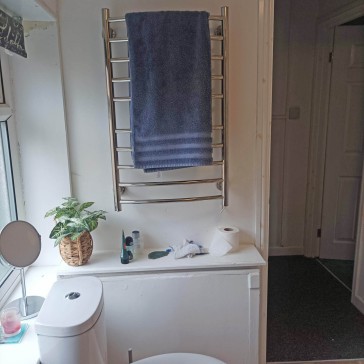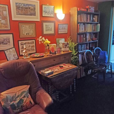 My home is a small quirky cottage next to Banbury Cross and very near the centre of the town. It has a bedroom on the first floor with a double bed which I also use as my office and a newly renovated bathroom.