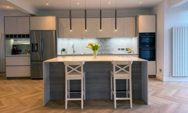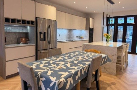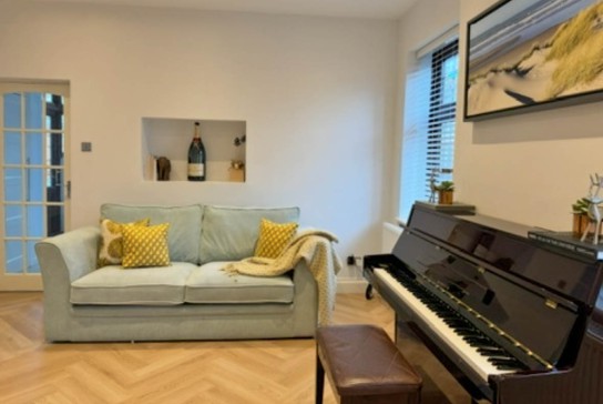 This newly renovated detached house has a fully equipped open plan kitchen and living area with Siemens kitchen appliances, Quooker boiling water tap, playroom, and spacious utility area.