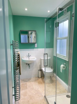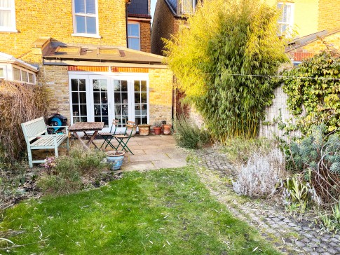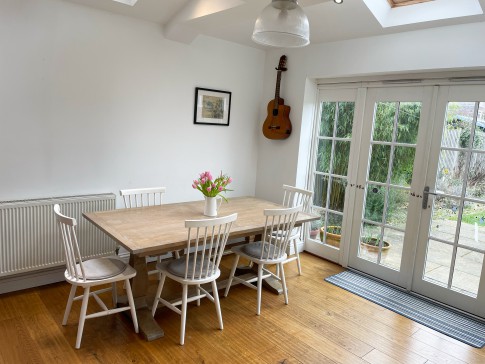 On the ground floor there is a living room, and an open plan kitchen-dining room, which opens onto the sunny, south-facing garden. The garden is 20metres long and 5metres wide, and is fully enclosed, so children and dogs can`t escape. The patio has a table and chairs for alfresco dining, and a sun umbrella.