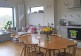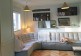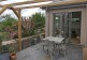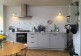 Downstairs is a large, light filled open plan kitchen-diner. At one end is a lounge area with a comfortable sofa and arm chairs to read a book, or gaze out of the large picture window with views across the rooftops to the distant fields and Radnorshire hills. Bi-fold doors open onto a patio area for outside eating and leading to steps down to a small enclosed terraced garden with a further lower patio and BBQ.
