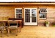 On the decking there is a wood fired hot tub and a cross the garden surrounded by trees is a wood fired sauna.
