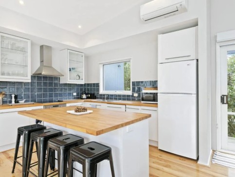Beautiful light-filled beach house in Aireys Inlet, less than 2 hours from Melbourne. It has three bedrooms, all with double beds. There is a central family bathroom and the master bedroom has an ensuite. The kitchen is well fitted out and there is lots of decking with BBQ, outdoor tables and a large umbrella. The house is serviced with a good internet connection.