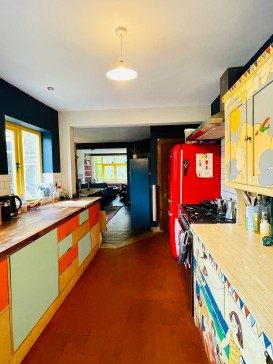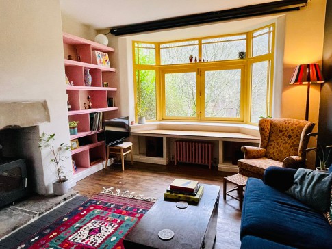 Unique, colourful house 10 min walk from the centre of Hebden Bridge in a peaceful location. We have 3 big bedrooms (1x Super King bed, 1x King, 1x Double) and a front and back patio. The back patio overlooks the woodland and Hebden Water. It is a very tranquil setting.