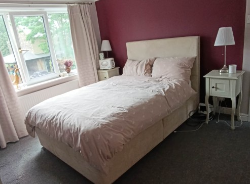 Cosy home with front porch, a bright place to read and watch the world go by. Front garden with roses and a bench to enjoy the morning sun. Through lounge with gas log burner. The kitchen has oven, hob, dishwasher, washing machine, fridge, freezer, microwave. There is a dining area with a table that seats 4.