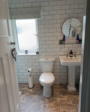 Upstairs there is a large front bedroom with a double bed and a back bedroom with a single bed. There is a new walk in shower and wash basin and wc in the family bathroom.