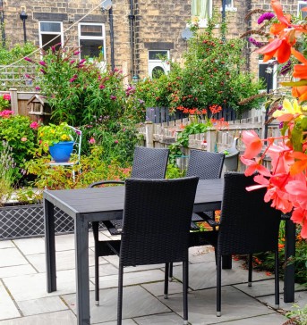The rear garden has a large table and chairs and is a suntrap in the afternoon and evening.