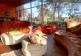 The dining room boasts a double-height ceiling with forest views to one aspect and landscaped garden to the other. Galley kitchen off the dining room.