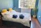 The flat sits on the first floor. It has a living room with a balcony overlooking mature trees and landscaped shared gardens. Inside, each room has been thoughtfully decorated in a mid-century style. There is original tiled flooring throughout. The main bedroom is light and spacious and has a king-sized bed. The second bedroom has a small double and is a cosy children`s room.