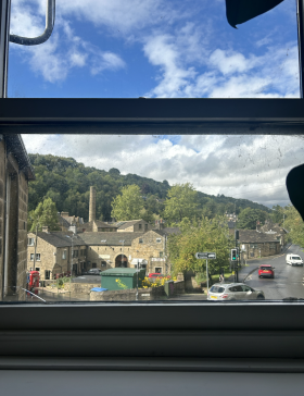 I live a 5 minute walk to the train station, which will get you in Manchester in 30 minutes and Leeds in 45. London is about 3 hours with a change at Halifax or Leeds. There are at least 3 trains per hour, running until late.