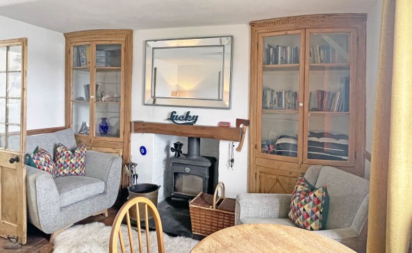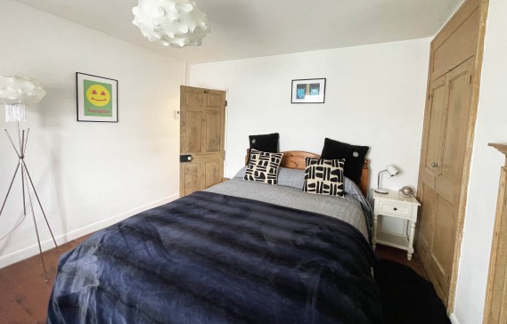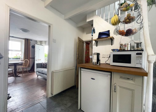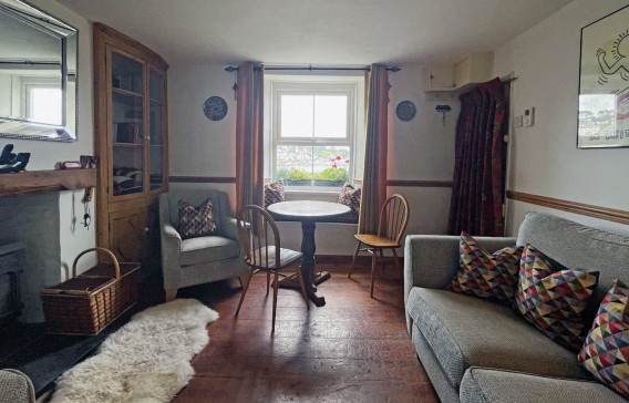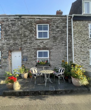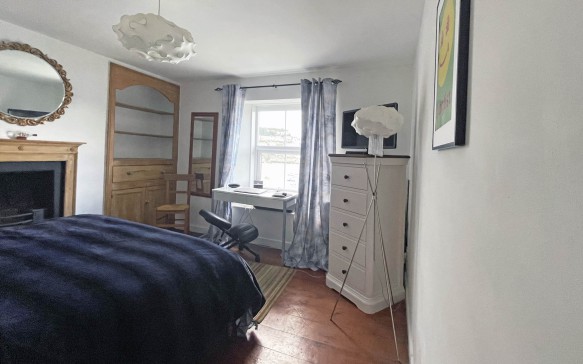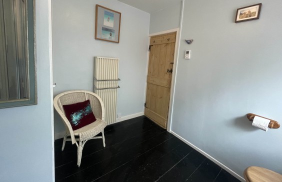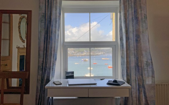 Our one bedroom home has a foot print of 60 square meters and faces the sea estuary to Fowey. The views are fabulous. There is a sitting room downstairs facing the view. There is a sofa, two armchairs, a window seat and a table for two. Plus a coal and wood burner. The sitting room leads to the kitchen and there is a a door from the kitchen to the back hallway for coats and shoes. This hallway leads to the yard when we store logs and there is a shed to store paddle boards and a kayak etc. There is a staircase leading from the kitchen to the first floor. The shower room is a good size and above the kitchen. The double bedroom is above the sitting room, the bed and the desk faces the view to Fowey. Outside the front is a raised patio area with a table and chairs. The coast path runs infront of the house. There are electric radiators in each room.