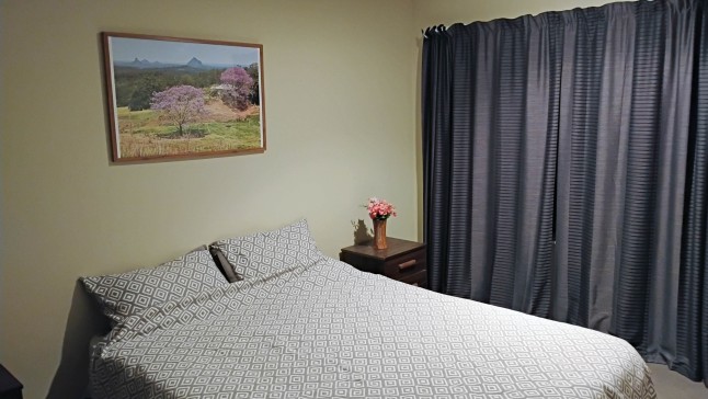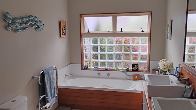 A permanent material brick home on top of a hill with modern houses around it. It has 2 living areas and 2 bathrooms with a nice yard out the back to sit and enjoy the outdoors.