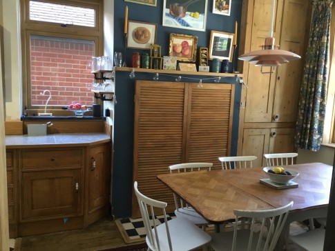 Our home was built in 1923. It is detached with a large driveway to the front and two large copper beech trees. And a medium sized garden with furniture for outdoor eating and other seating. It is west facing and a sun trap. The house has 3 double bedrooms, one en-suite, with copper bath and shower, a first floor family bathroom and a ground floor shower room. There are two further sing,e bedrooms, one in the attic with a single bed and single truckle bed underneath. There are 3 living rooms, two with tv’s, one with hifi, piano and original useable fireplace. There is a kitchen diner with a large range cooker and extendable table for larger gatherings. Additionally, there is a small library and walk through conservatory. Our house is the opposite of minimalist and we love vintage finds which are doted about with original art and artefacts.