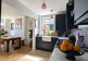 There is an open plan modern kitchen and dining room with a large table accomodating 7 people.