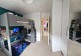 The main bedroom is a spacious double room with its own private ensuite bathroom. There are also two children’s bedrooms, each with a single bunk bed (sleeping one). Under each bunk is a dedicated gaming station and study desk, making the rooms fun and functional for younger guests.